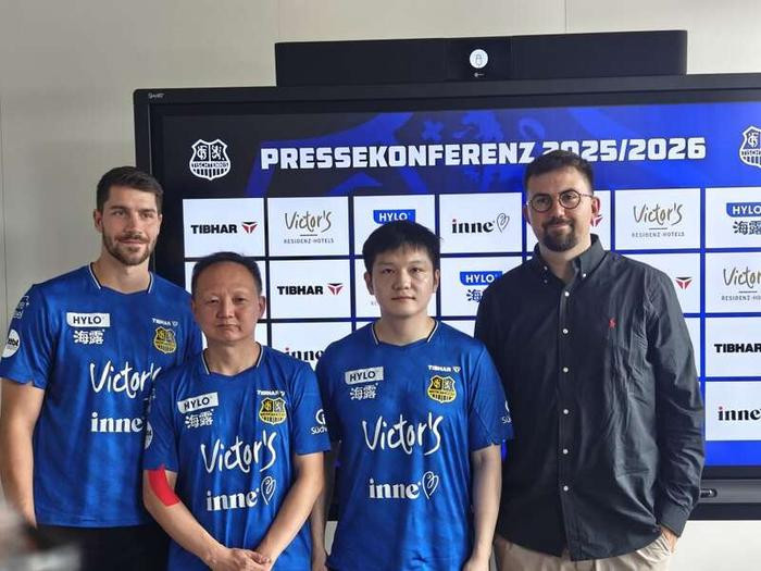 中国青年报客户端讯(中青报·中青网记者慈鑫)北京时间8月27日晚,德国乒乓球甲级联赛萨尔布吕肯俱乐部举行2025-2026赛季首场新闻发布会。中国球员樊振东身着新队服亮相。根据赛程安排,樊振东的德甲首秀将是当地时间8月31日晚在萨尔布吕肯主场迎战贝格诺伊施塔特(北京时间9月1日凌晨)。